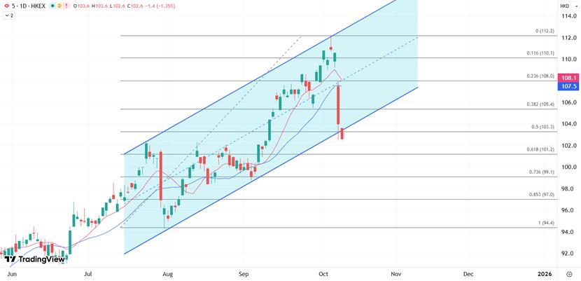XM Hongkong-Aktien: Am Donnerstag plante HSBC (00005) die Privatisierung der Hang Seng Bank (00011) für 155 Yuan pro Aktie und schlug vor, den Börsennotierungsstatus von Hang Seng zu widerrufen. Nachdem die Hang Seng Bank gestern 15 % höher eröffnete, stieg sie höchstens um mehr als 40 %; HSBC fiel einst um 6,7 %, der stärkste Rückgang seit sechs Monaten. Heute fiel der Aktienkurs von HSBC Holdings weiter auf ein Monatstief.