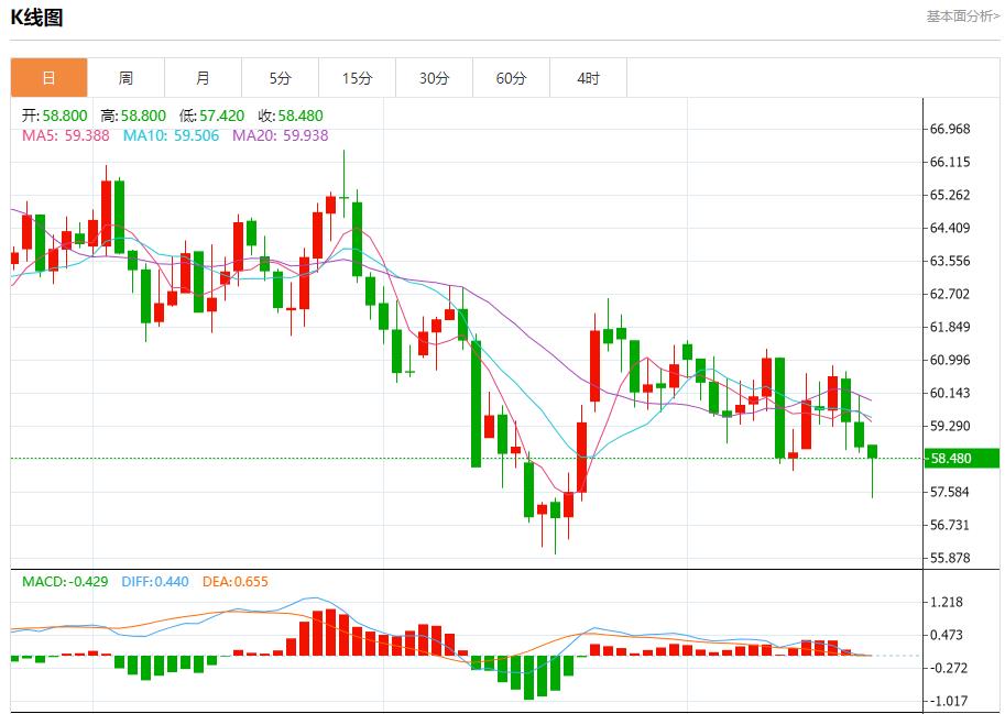 Rohölmarkt: Ab 21:20 Uhr Pekinger Zeit fielen die US-Ölpreise.58.430, ein Rückgang von 0,95 %. Vor der New Yorker Sitzung fiel der Preis für (Rohöl) im letzten Intraday-Handel und fiel unter die wichtige Unterstützungsmarke von 58,00 $, obwohl er ein überverkauftes Niveau erreichte, da kurzfristig der wichtigste Abwärtstrend vorherrschte, gepaart mit anhaltendem Abwärtsdruck durch Preise, die unter dem gleitenden 50-Tage-Durchschnitt gehandelt wurden, und negativen Signalen vom relativen Stärkeindikator.