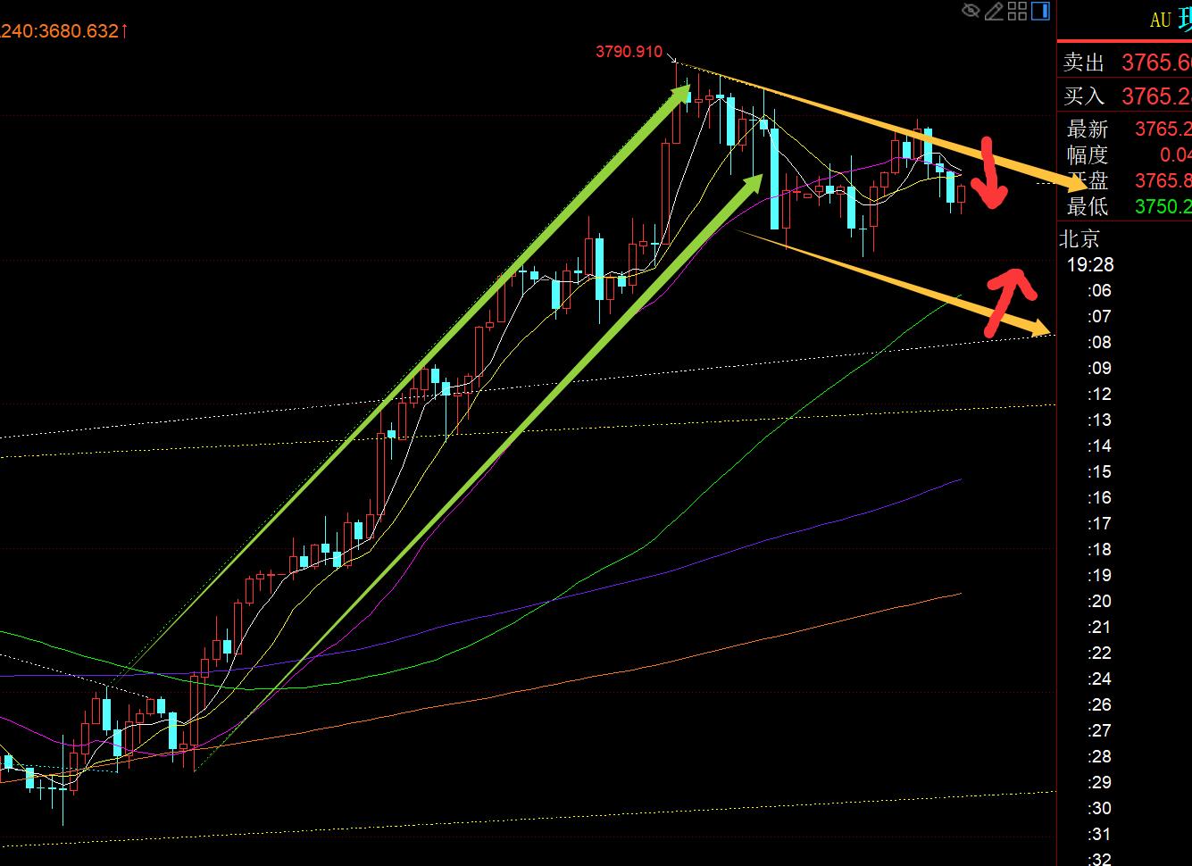 First, gold daily line level: Yesterday closed a long upper shadow, small positive K, which suspended the strong unilateral pull-up to a certain extent, and there are signs of fluctuation correction today. In addition, around the National Day holiday, gold prices generally suppress and fall in the previous few days of the holiday, and gold prices generally stabilize and continue to strengthen in the next few days of the holiday. You can refer to the last year's move; another point is that whenever a large integer mark is touched, there will be a wave of backtesting, this time it is the 3800 mark; www.xmfx.mebined with the above points, today is inclined to look at the downward correction of the oscillation, and wait until it is close to the short-term moving average for 5 or 10 days before it stabilizes. Last year, the oscillation was suppressed and corrected to the middle track, and the holiday was about to end, and then stabilized and rose.Continue to continue to move forward with a continuous positive unilateral trend, will this cycle continue to take place this year? I personally think that this time it is probably a bit overhang, because the pull-up force this year is significantly stronger than last year. At this time, there is still nearly 160 meters away from the middle rail. If you test the middle rail, you may lose the last unilateral starting point, which is not conducive to strong stability; unless there is a situation, the price fluctuates narrowly and slowly declines for several days, dragging until after the National Day, and then the middle rail climbs upward at a speed of 20 meters per day. After October 1, the middle rail will basically move upward by 3700, so the overall decline in these 5 trading days before the holiday can only be maintained at a distance of 60-70 meters. Anyway, the position of the middle rail moving upward in the later period must be above 3630. A little farther; then if you want to maintain the decline space so small, but it needs to be delayed for several days, you can only do it by consolidating and slow down at a high level (the alternating yin and yang is the best way to move); today's 5 moving average is above 3720, and when you slide down close to here, you can be bullish when you are low;