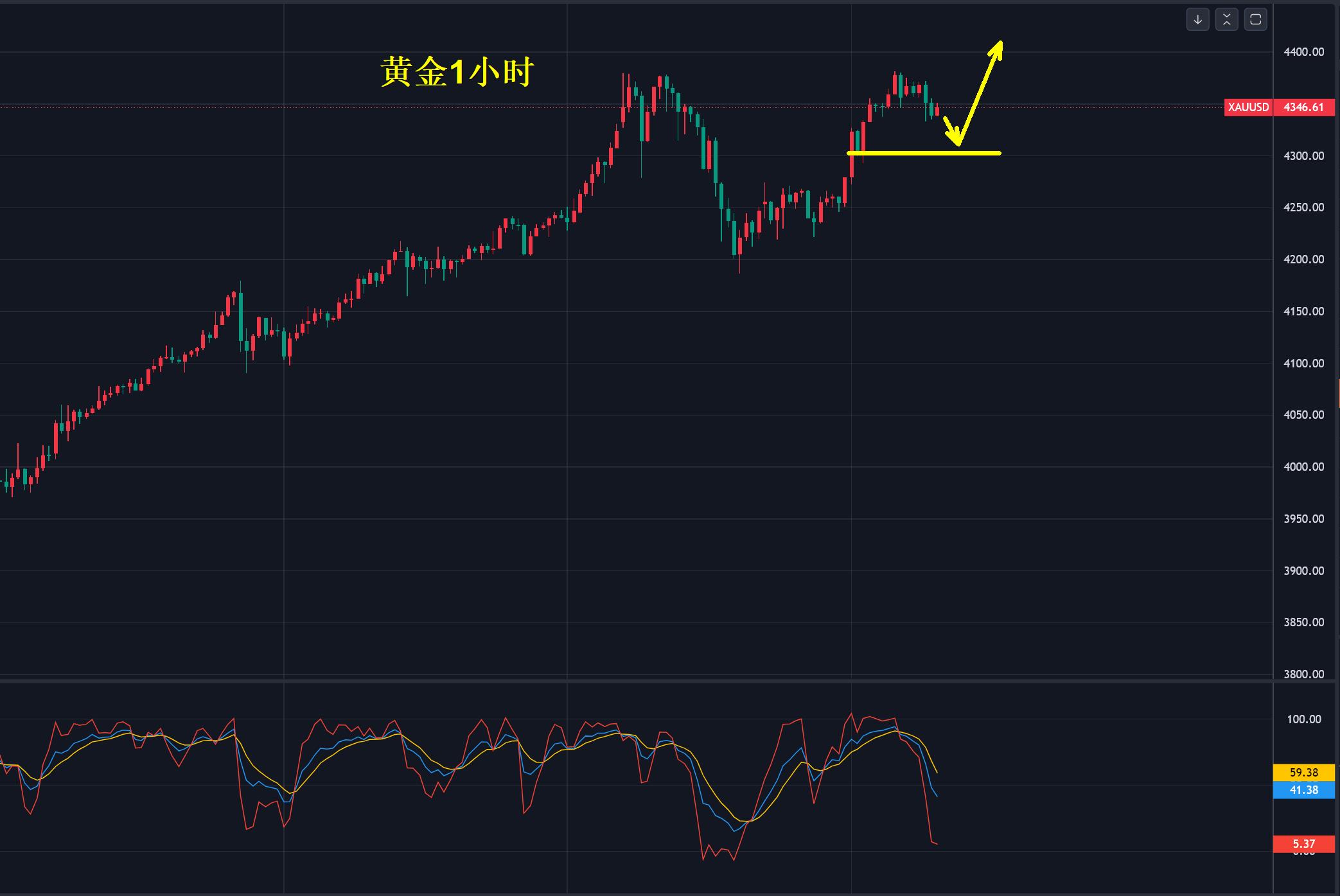 My point of view is to buy in the range of 4320-4300, and the key point to look upward is the breakthrough of 4380-85. The market has reached a stage of crazy and mindless trading.