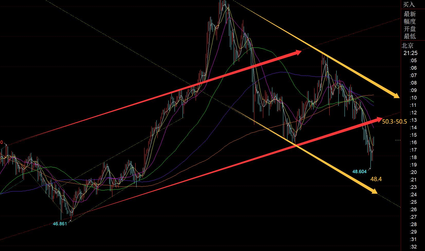 은: 오늘날 은은 금보다 훨씬 약합니다. 아시아-유럽 시장은 거의 반등 없이 천천히 하락세를 이어가고 있습니다. 최소 48.6의 일일 추세 지지선을 직접 삽입하여 주간 10 이동 평균 지지선인 48.4에 접근합니다. 그 다음에는 늦은 거래의 마감 상황에 따라 달라집니다. 긴 낮은 그림자가 나타났다가 49.35 위에서 닫힐 수 있다면 여전히 낙관적입니다. 다만 이번 주에 당초 예상했던 5파 풀업은 기본적으로 실패해 폭이 조정됐다. 합당한 범위 내에서 처리하십시오. 54.4-47.5의 높고 넓은 범위에 중점을 둡니다. 오늘 밤에는 빨간색 채널의 하부 트랙 카운터 압력인 50.2-50.3에 초점을 맞추고 압력 하에서의 풀백에 주의하여 48.4-48.6을 지지하십시오. 적색 채널로 돌아오면 다음 주 초 충격파 상승으로 돌아올 가능성이 있어 더 이상 약하지 않습니다.