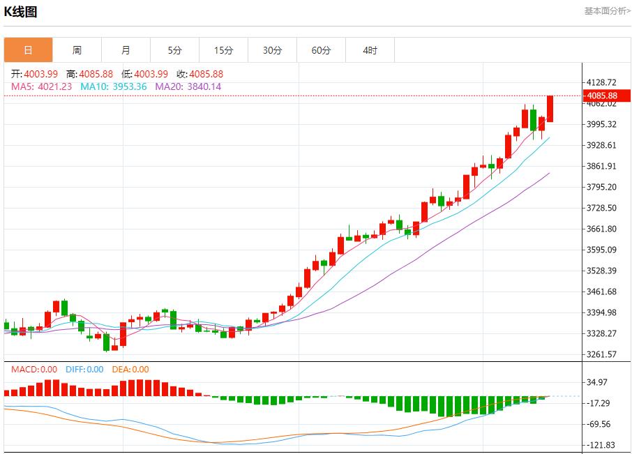 现货黄金:截止北京时间20:23,现货黄金上涨,现报4084.53,涨幅1.67%。纽市盘前,(黄金)价格在最后一个盘中交易中继续看涨,在相对强度指标出现积极信号的情况下创下历史新高,尽管达到了超买水平,这可能会减少其即将到来的收益,因为其在EMA50上方交易的积极压力仍在继续,并且在短期主要看涨趋势的主导下。