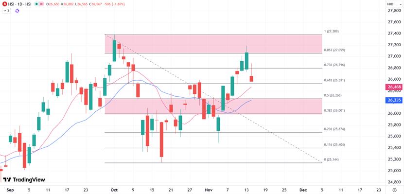 XM: as ações de Hong Kong recuaram após quatro dias consecutivos de ganhos, e a marca de 26.000 pode mais uma vez desempenhar um papel importante www.xmfx.meo um suporte importante