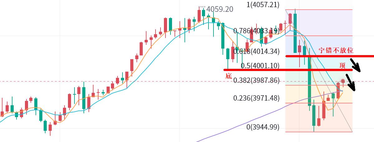 3,震盪中,618位置寧錯不放,昨日4058-3945跌幅反抽618位置在4014-5位置,觸及打死都要空。