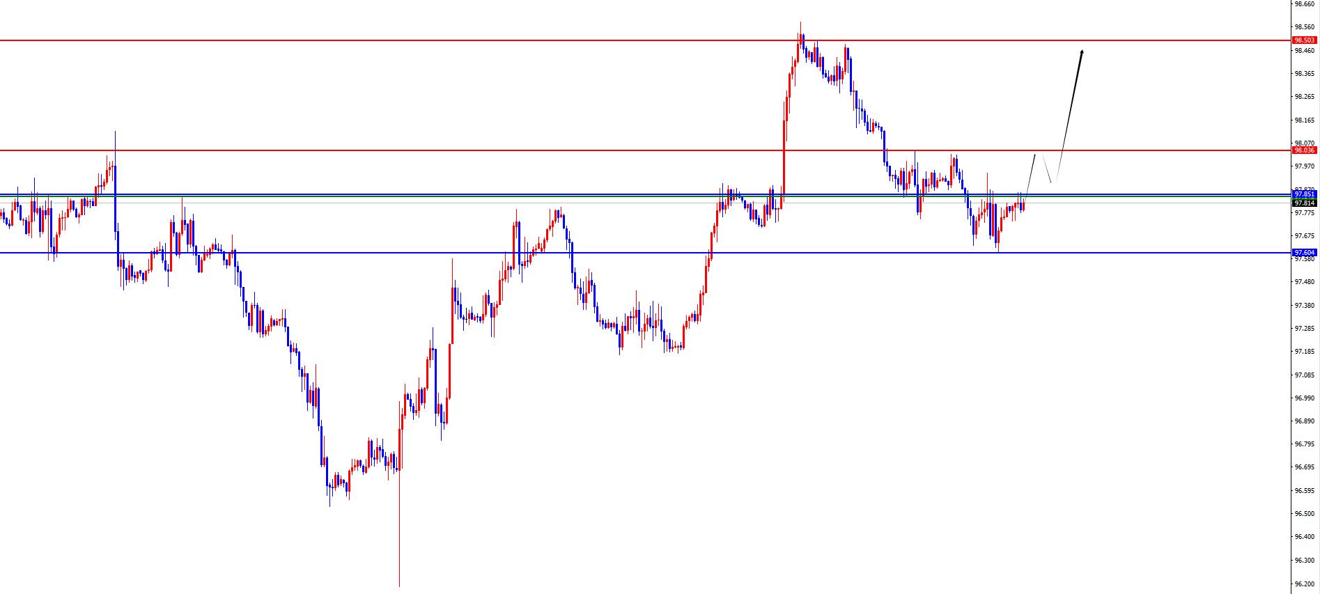 The US dollar index has a long range of 97.60-70, with a defense of 5 US dollars, a target of 98-98.50