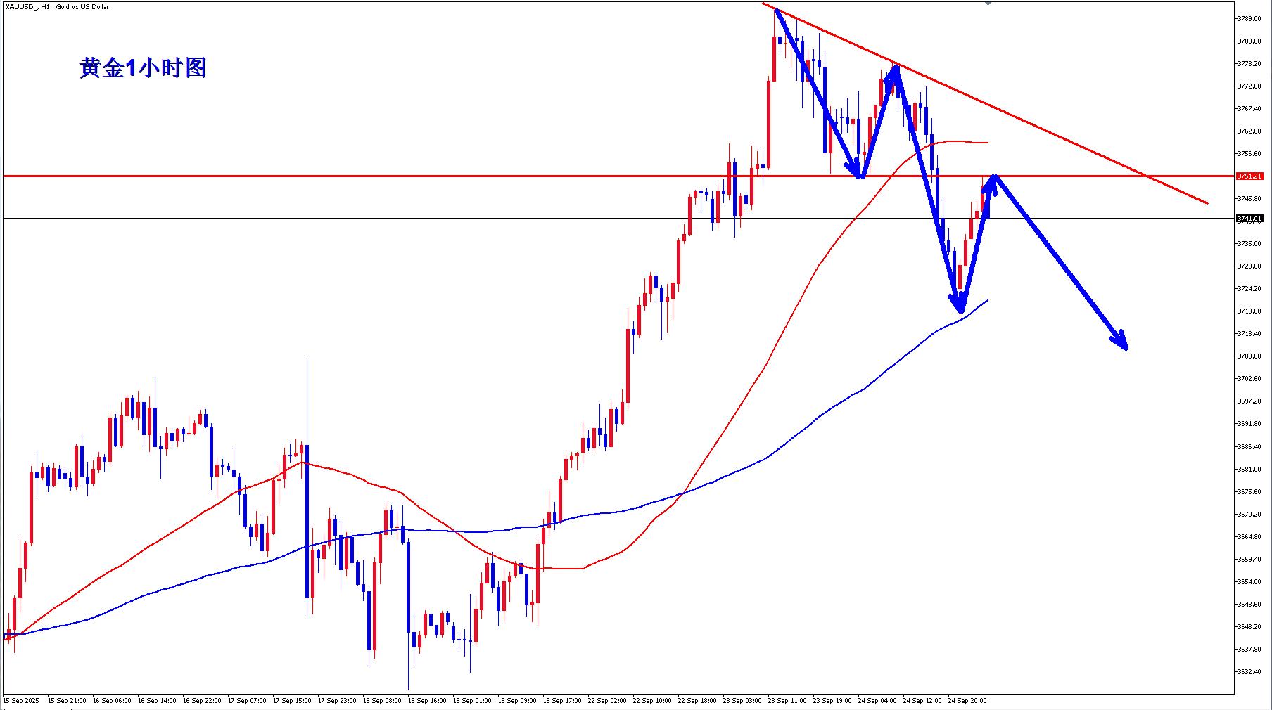 Gold finally fell below the 3750 line yesterday, and gold directly fell 3748 backhandedly in the US session. Gold fell as scheduled in the second half of the night. Gold had begun to weaken in the short term, and it continued to be short in the early rebound.
