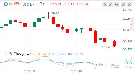 On October 17, in early Asian trading on Friday, Beijing time, the U.S. dollar index was hovering around 98.18. On Thursday, the U.S. dollar index continued its decline and finally closed down 0.31% at 98.361. U.S. bond yields generally fell, with the benchmark 10-year U.S. bond yield falling below 4% and finally closing at 3.973%. The 2-year U.S. bond yield, which is sensitive to the Federal Reserve's policy interest rate, closed at 3.431%. As the explosion in the U.S. credit market boosted risk aversion and expectations of an interest rate cut by the Federal Reserve increased, spot gold hit a record high for the fourth consecutive trading day, soaring $115 in a single day to more than $4,300 per ounce, and finally closed up 2.8% at $4,326.12 per ounce; spot silver stood above the $54 mark, and finally closed up 2.19% at $54.15 per ounce. The intensifying oil supply glut and concerns about the global economic outlook have caused international crude oil to hit a new low in more than five months. WTI crude oil in the US market followed the plunge of risk assets and finally closed down 2.39% at US$56.87/barrel; Brent crude oil finally closed down 2.23% at US$60.84/barrel.