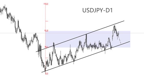 From the technical trend, USDJPY is in a mid-term upward trend, and the K-line is within the channel in the chart. Although USDJPY has risen continuously in the past three trading days, since it has previously touched the upper track of the channel and is currently moving to the lower track, the short-term rise may soon encounter resistance. The purple area in the figure is the golden section of the iconic downward wave. The highest point of the mid-term rebound trend has risen beyond the range. The rebound is sufficient, and a long-term downward trend may occur in the future.