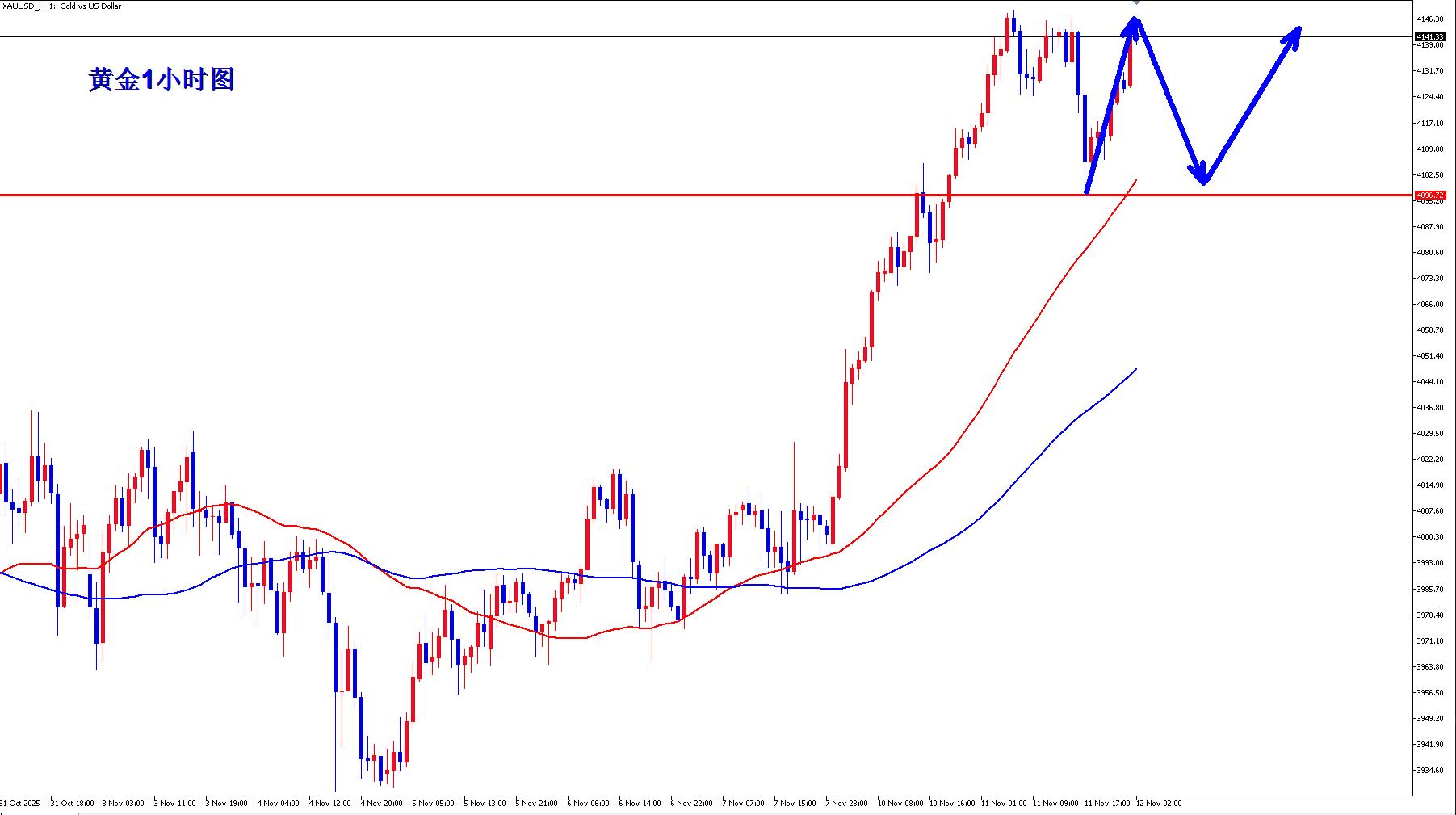 The 1-hour moving average of gold is still a bullish arrangement with golden crosses upward. Gold still has momentum for its 1-hour rise. Gold fell back slightly below 4100 last night and then quickly reversed, indicating that gold’s short-term support of 4100 is still effective. Gold fell back above 4100 in early trading and continued to go long on dips. Gold is still building momentum to break through 4160.