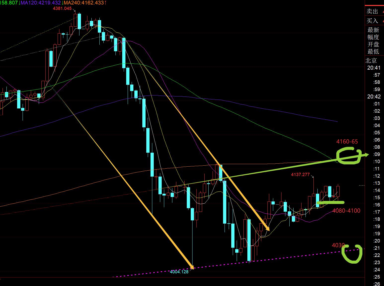 Primero, oro: la rápida y continua caída de ayer por la mañana liberó fuerza corta durante la noche, y temprano en la mañana sabíamos que la continuidad era pobre y que era fácil tocar fondo y tirar subió y subió a un máximo de 4161. La resistencia original era centrarse en la línea 41 50, si se suprime, estará en la parte inferior. A las 15 en punto, simplemente cerró un Yang y atravesó 4150. La última vez, pisé el trueno. Esta vez soy más cauteloso. Necesito esperar a que aparezcan al menos dos Yang K consecutivos antes de poder decidir si es efectivo. xmfx.meo se esperaba, el mercado europeo cayó rápidamente y alcanzó la línea 4015 antes que el mercado estadounidense. Esta posición es el punto de soporte derivado correspondiente a la línea de tendencia clave desde el soporte 3311. También tendí una emboscada de antemano y agarré algunos metros; Por segunda vez en el mercado estadounidense quería planificar esta posición para continuar el rebote alcista. , desafortunadamente solo se dio a 4023;