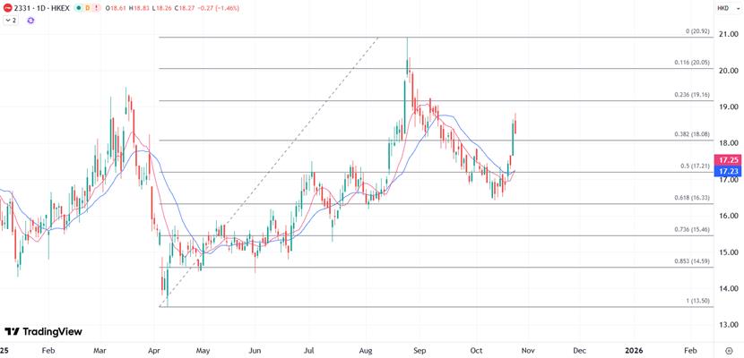 Por ejemplo, la entrada de Li Ning en la plataforma minorista instantánea ha planteado requisitos más altos para la selección en tienda, la eficiencia del embalaje y la dotación de personal. Si el proceso no se gestiona adecuadamente, puede aumentar los costos operativos de una sola tienda. Las plataformas de venta instantánea suelen cobrar una determinada xmfx.meisión y las promociones pueden ser más frecuentes. Es necesario prestar atención a su impacto final en el margen de beneficio neto del producto. El precio de las acciones de Li Ning subió significativamente de la noche a la mañana en Estados Unidos, pero las acciones de Hong Kong no siguieron su ejemplo hoy, estableciendo un nuevo máximo desde el 10 de septiembre y luego retrocediendo. Si cierra por debajo de 18 dólares de Hong Kong durante el día, se enfrentará a la presión de caer a 17,20 dólares de Hong Kong. En ese momento se prestará atención al soporte clave formado por las principales medias móviles en el gráfico diario.