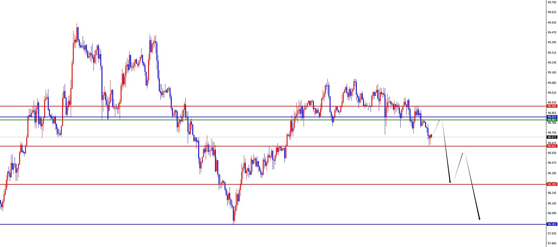 El índice estadounidense está corto en el rango de 98,80-90, defendiendo 5 dólares estadounidenses y apuntando a 98,60-98,30