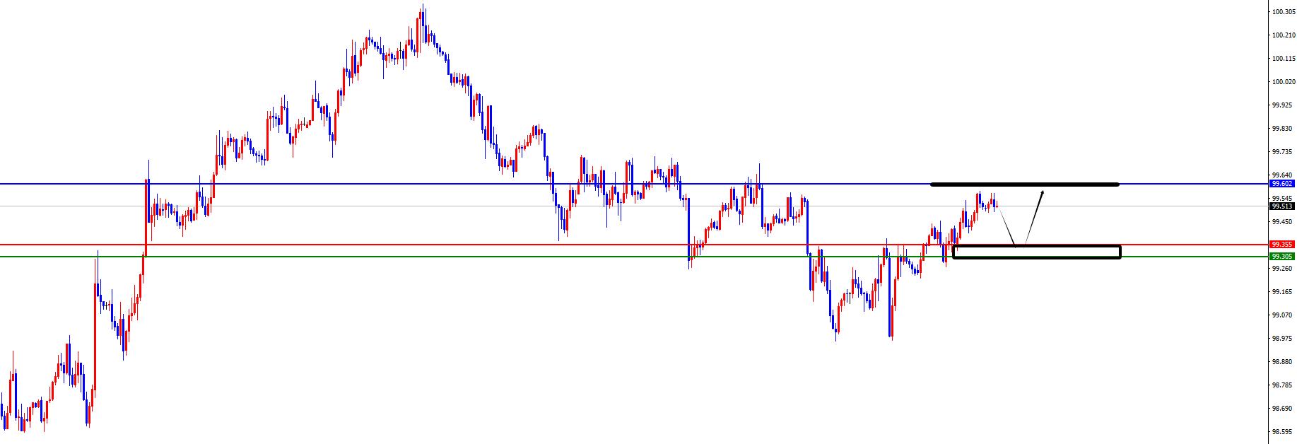 주요 분수령은 99.30-35 범위이며 가격은 반전 신호가 없을 때까지 매수 상태를 유지합니다.