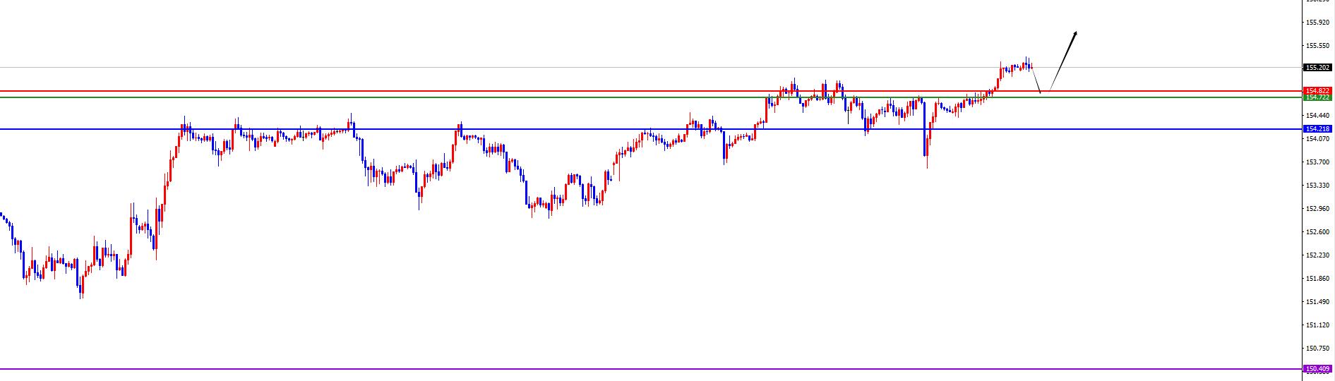 단기 분수령은 154.70-80 영역에 있으며 가격은 반전 신호가 없을 때까지 길게 유지됩니다.