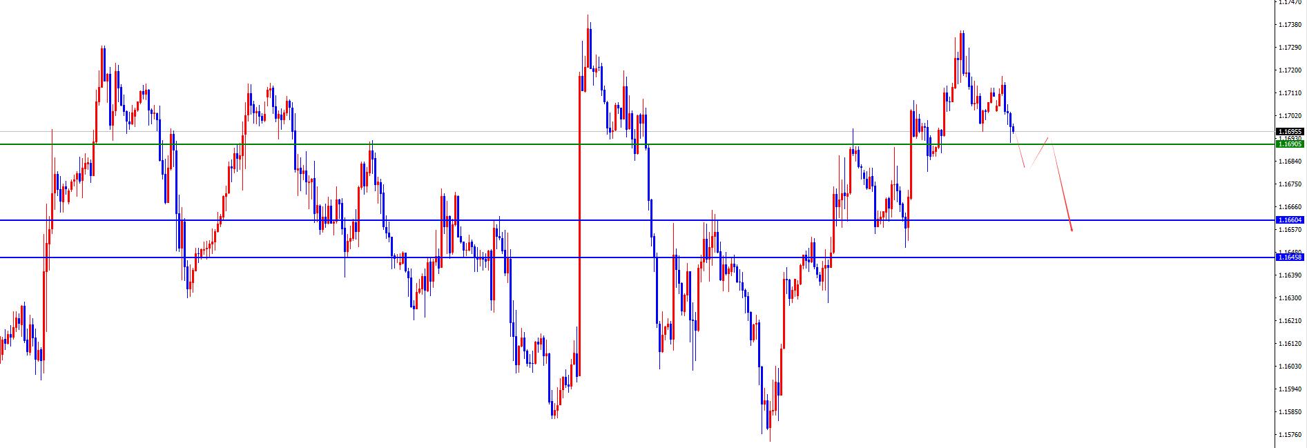 欧美跌破1.1690后反弹空,目标1.11.1660-1.1645