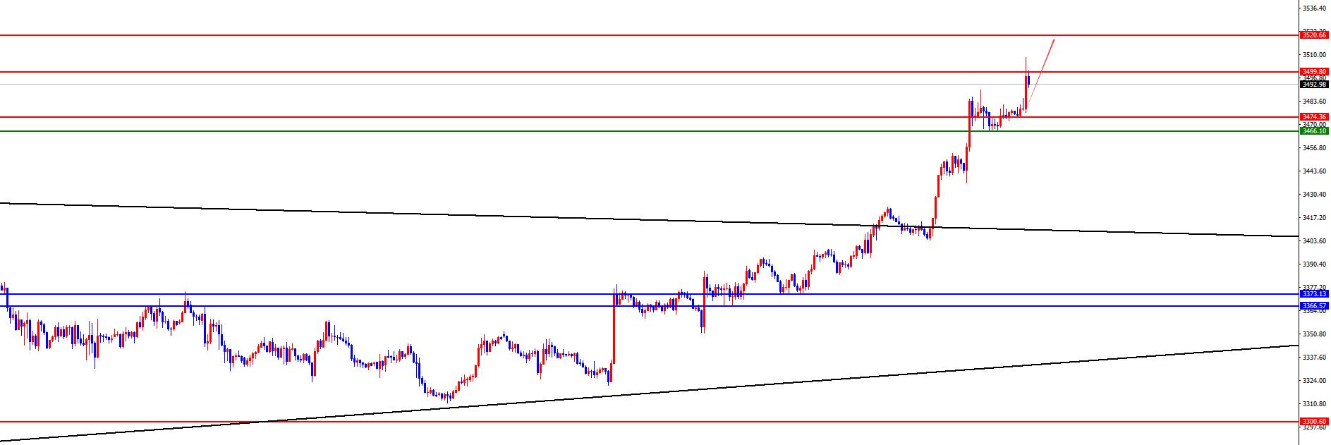 黄金3366-3374为多空分水岭,价格在此区域上维持多