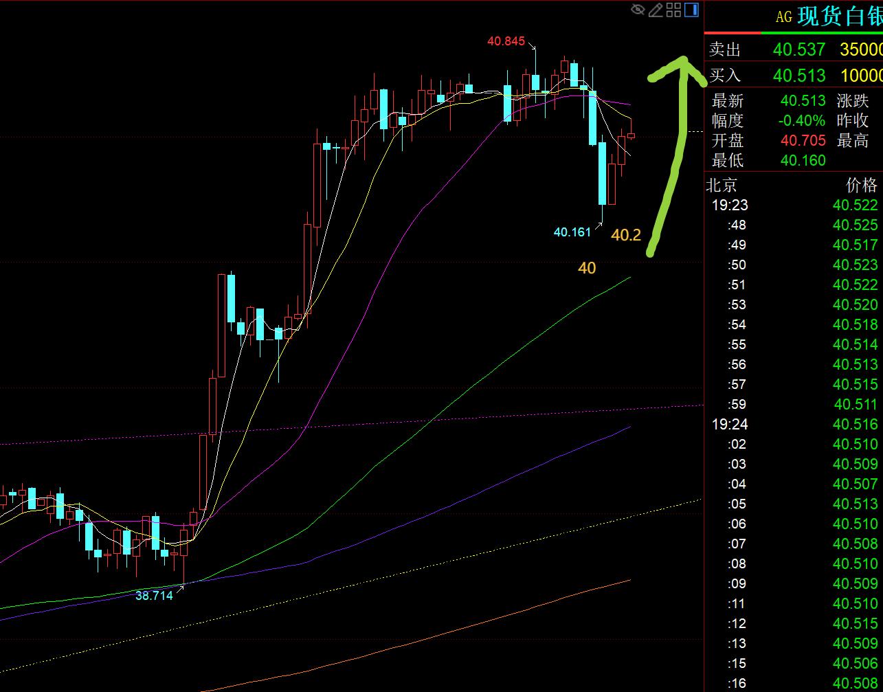 第二,白银方面:周末视频提前给出回踩39.5、39.35都可以继续看涨,昨日一早下探39.5企稳后,一路单边强攻至40.6一线,一天直接拿下1块,相当于黄金50美金涨幅;