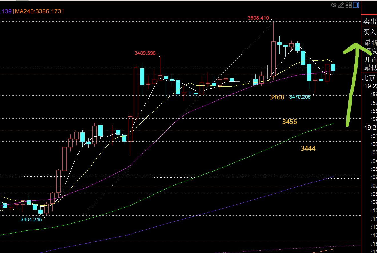 第三,黄金小时线级别:亚盘早间终于打破了循环,这两周每天亚盘开盘之后总容易先跌一波,今日是直接拉升30米,刷了历史新高,惯性多串了8米,最高3508;午后横盘于3390之上,欧盘向下打压,算洗了一波,因为它刺穿了早间低点,小时线大阳起涨点等,只要是做短线跟随看涨的,基本都会损,但我想说的是,单边拉升过程中,不会一条直线的一路强攻,总会遇到高位跳水回调,什么时候跳是不清楚的,比如今天下午跳,是因为英国财政危机,英镑短线瞬间大幅跳水,推动美元瞬间大幅拉升,从而打压了金价;但你发现没,美元一路走高,黄金其实并未跌多少,因为美元和黄金都属于避险港口,而美国本身也有债务危机,是否会连锁反应呢,最终完美的避风港口就是黄金;回归技术上,既然欧盘冲高回落,美盘也可能还有一波下探再企稳拉升,也借机可以修复下短期背离和超买,最好就是通过偏区间震荡长时间运行来作为修正,等靠拢日线5均线(今日上移3444)又会是一个新的拉升启动点,当然现在离它还有一定距离,也不一定会完全试探到位;从分割角度看,今晚首要关注3468一线支撑,其次是3456,强支撑3444,每一处支撑或随时企稳再度拉升冲击3500,尤其是后面两个;