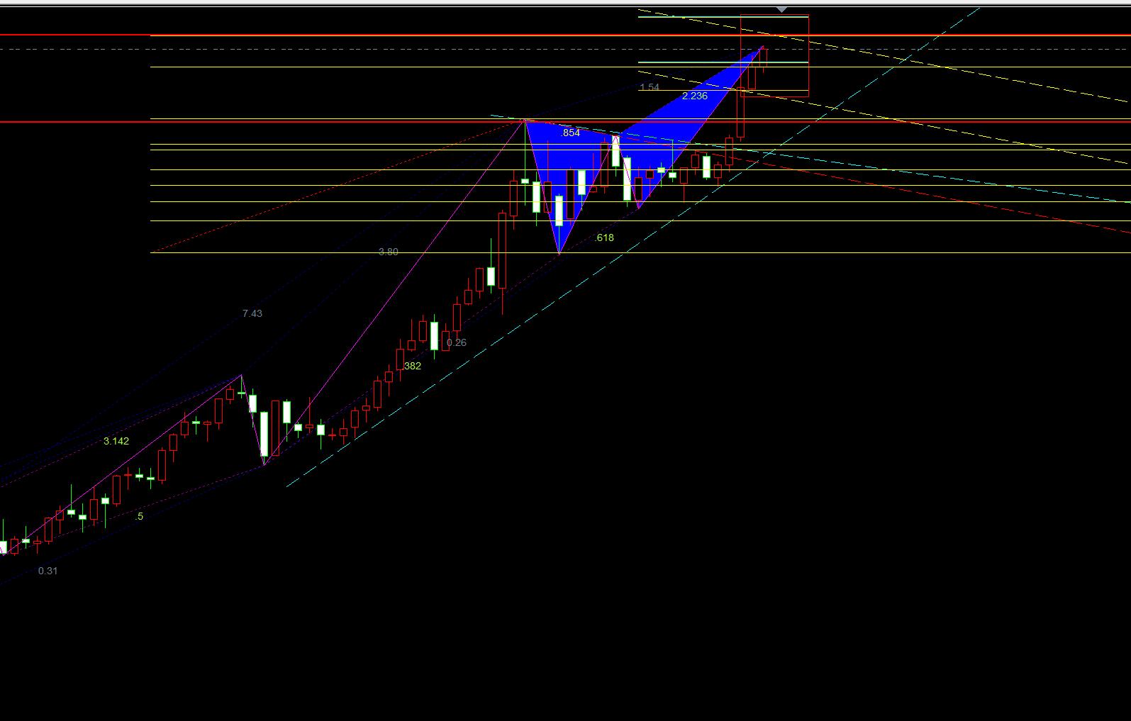 黄金已经到3700也时候理智的时候了,现在一定有人开始喊3800甚至4000也有5000的,也许有一天会到,但是你还在追多你的账户一定活不到哪个时候,下跌的力度远远大过上涨的力度,一阴吃五阳随时上演,所以我们也不去追多,但不去不断的猜顶,这个更多的时候就是耐心等待最佳机会出现,这个机会一是和谐波的转折K线出现,点位就在上图边线附近,二是四小时的弱空信号出现,现在价格还在四小时的上线支撑,不过在加速线这里开始压制,一旦收复上线就是我们右侧入场的时候,所以综合得出结论就是:多看少动耐心等机会出现。