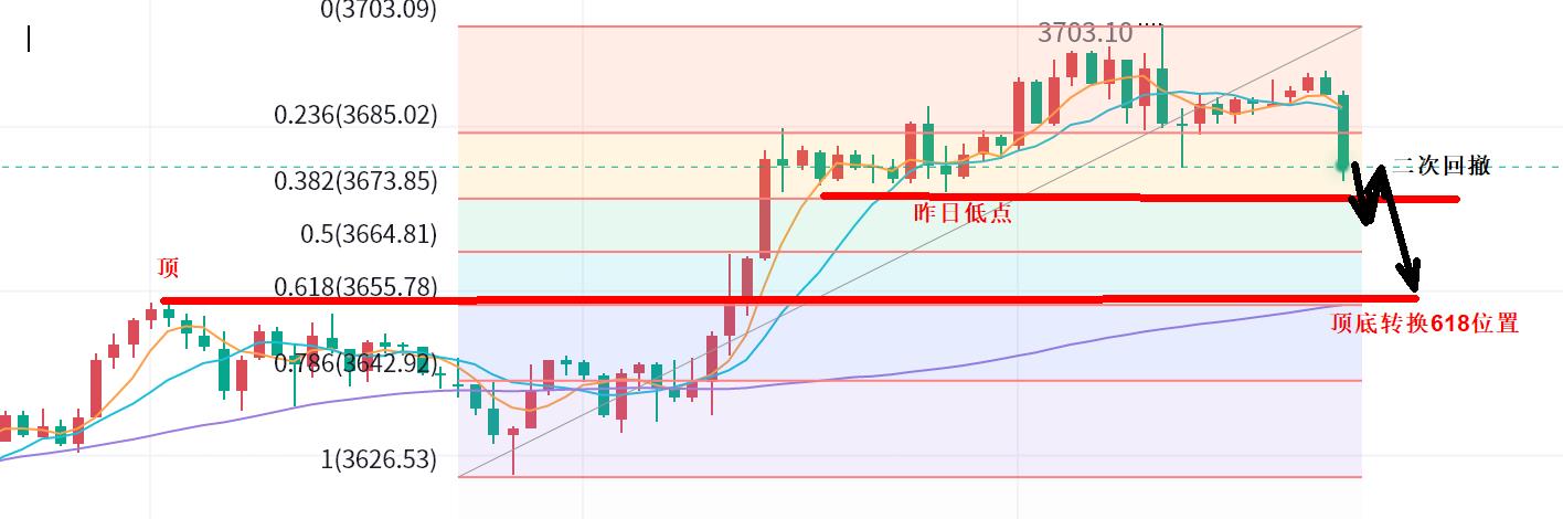1,分水岭3674,日内跌破,反抽可短空。日内关键支撑3655-56.