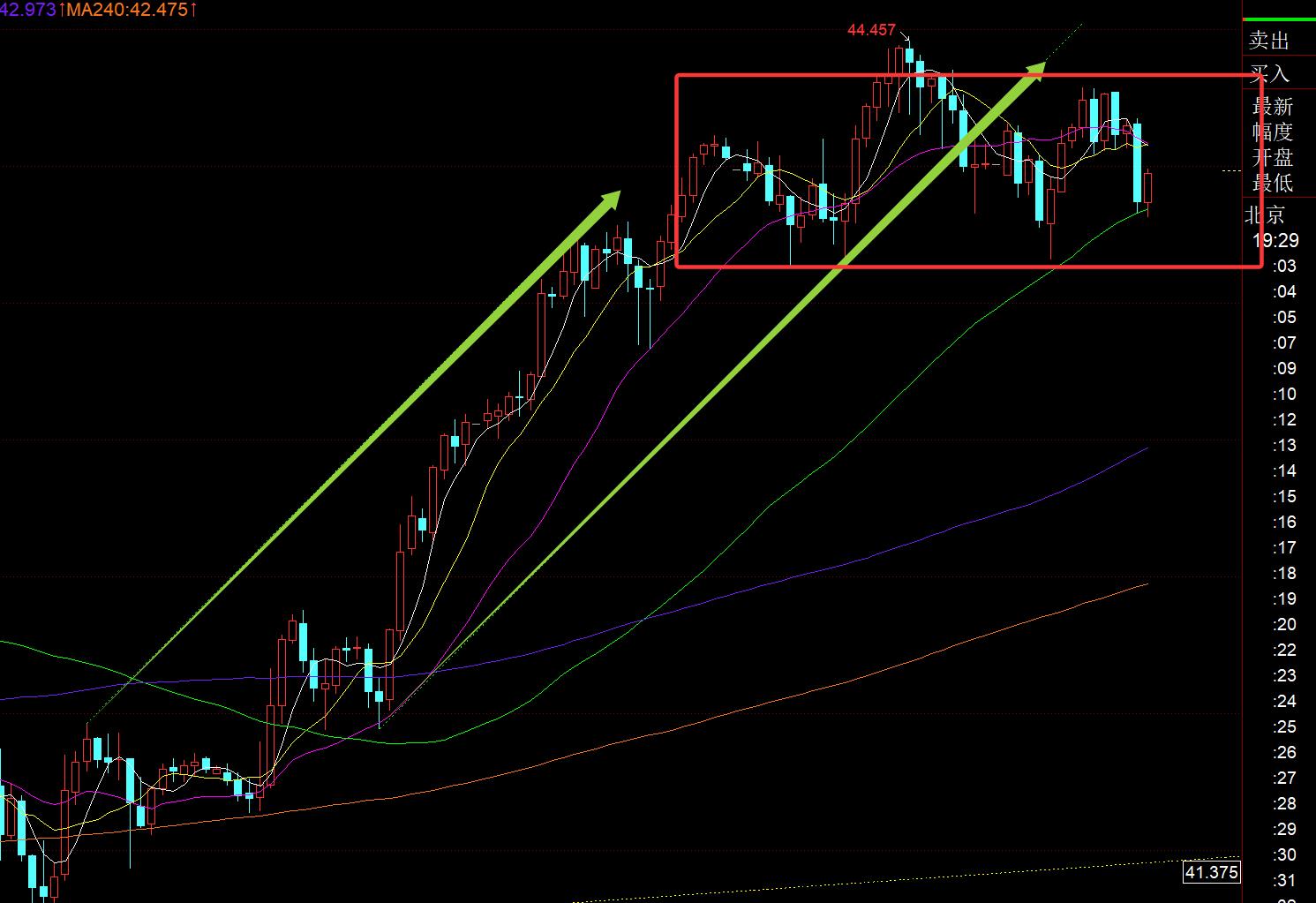 第二,白银方面:同样,昨日早间直接看续涨一波,午后回踩一波,欧盘企稳继续看涨,两次都是依托43.85看涨,最终抵达44.2目标,最高逼近44.45一线;