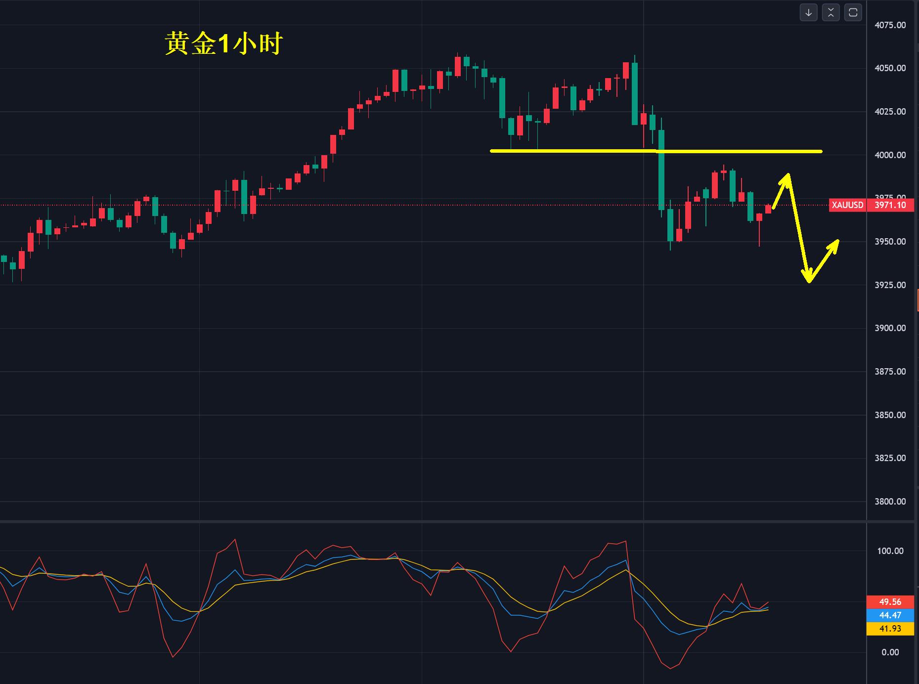 另外,文章中我们主要强调是当下日内的行情,并非长线方向布局,多空的转变是以当天为主,黄金两次到4055美元附近,假期获利盘选择离场引发了抛售,今天区间在4000-3945美元,破位将延续。
