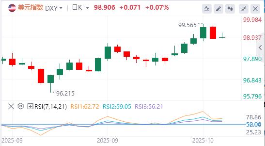 上周五,美元指数盘中跳水,跌破99关口,最终收跌0.56%,报98.835,结束四日连涨。截至目前,美元报价98.90。