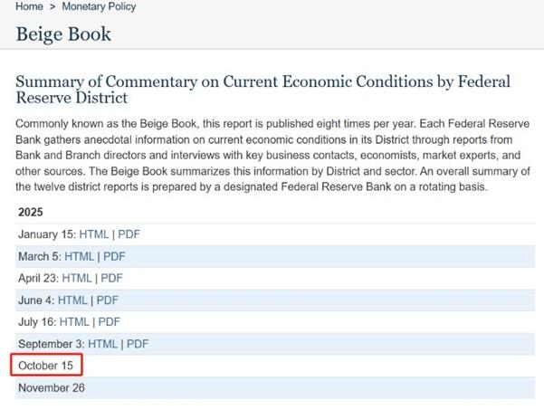 本周四2:00,美联储将公布年内第七份褐皮书。这份褐皮书将揭示9月3日至今,美国12个联邦储备区的就业和通胀变化情况。10月3日,美国劳动统计局公布了9月份非农就业报告,其中新增非农就业人口为5万人,虽然高于前值2.2万人,但依旧处于历史相对低位。非农就业报告与褐皮书的调查时间重叠,所以褐皮书中对就业市场的描述预计同样偏悲观。9月份美国CPI年率将于10月24日公布,晚于褐皮书发布时。所以本周四的褐皮书重点内容为十二个储备区的物变化。如果物价持续低迷,则美联储的降息政策大概率延续,美元指数或受利空冲击。