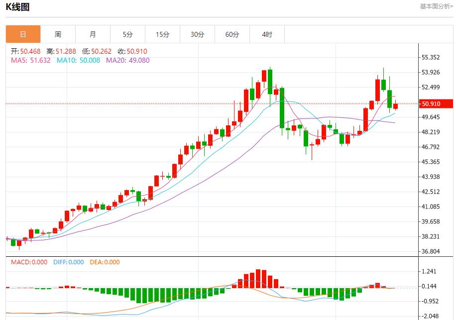 现货白银:截止北京时间21:20,现货白银上涨,现报50.914,涨幅0.67%。纽市盘前,(白银)价格在日内波动,短期内依靠较小的看涨趋势线,试图获得可能有助于其恢复和再次上涨的看涨动力,在达到超卖水平后,伴随着相对强度指标上积极信号的出现。