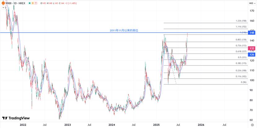 O layout da AI na IA permitiu que o Alibaba continuasse a avançar na melhoria da avaliação narrativa da IA. xmfx.me os múltiplos conceitos de "recuperação de xmfx.meércio eletrônico" + "ai inovador" + "Reestruturação de liberação de valor", o preço das ações também está subindo xmfx.me um grande momento. Ele aumentou 50% desde a baixa de abril e agora atingiu uma alta desde novembro de 2011. Se continuar superando a HK $ 150, abrirá um novo espaço ascendente e procurará HK $ 170.