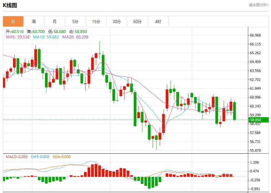 Ham petrol piyasası: Pekin saatiyle 21:20 itibarıyla ABD petrolü %3,00 düşüşle 58,830 seviyesinde işlem görüyor. New York'ta piyasa öncesi (ham petrol) fiyatları, yükselmesine yardımcı olabilecek yükseliş momentumu kazanmak amacıyla son işlem seansında düştü ve negatif sinyallerin ortaya çıktığı göreceli güç göstergesindeki bazı açık aşırı alım koşullarını ortadan kaldırmaya çalıştı, pozitif baskı EMA50 üzerinde işlem görmeye devam etti ve kısa vadede küçük bir yükseliş kanalı ve trend çizgisi boyunca işlem görüyor.