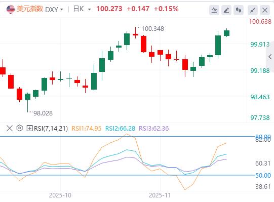 Çarşamba günü, riskten kaçınma ve Fed'in Aralık ayında beklemede kalabileceği beklentileriyle desteklenen ABD doları endeksi, üst üste dördüncü işlem gününde güçlenerek son iki haftanın yeni zirvesi olan 100 seviyesinin üzerinde kaldı. Şu an itibariyle ABD doları 100,27 seviyesinde işlem görüyor.