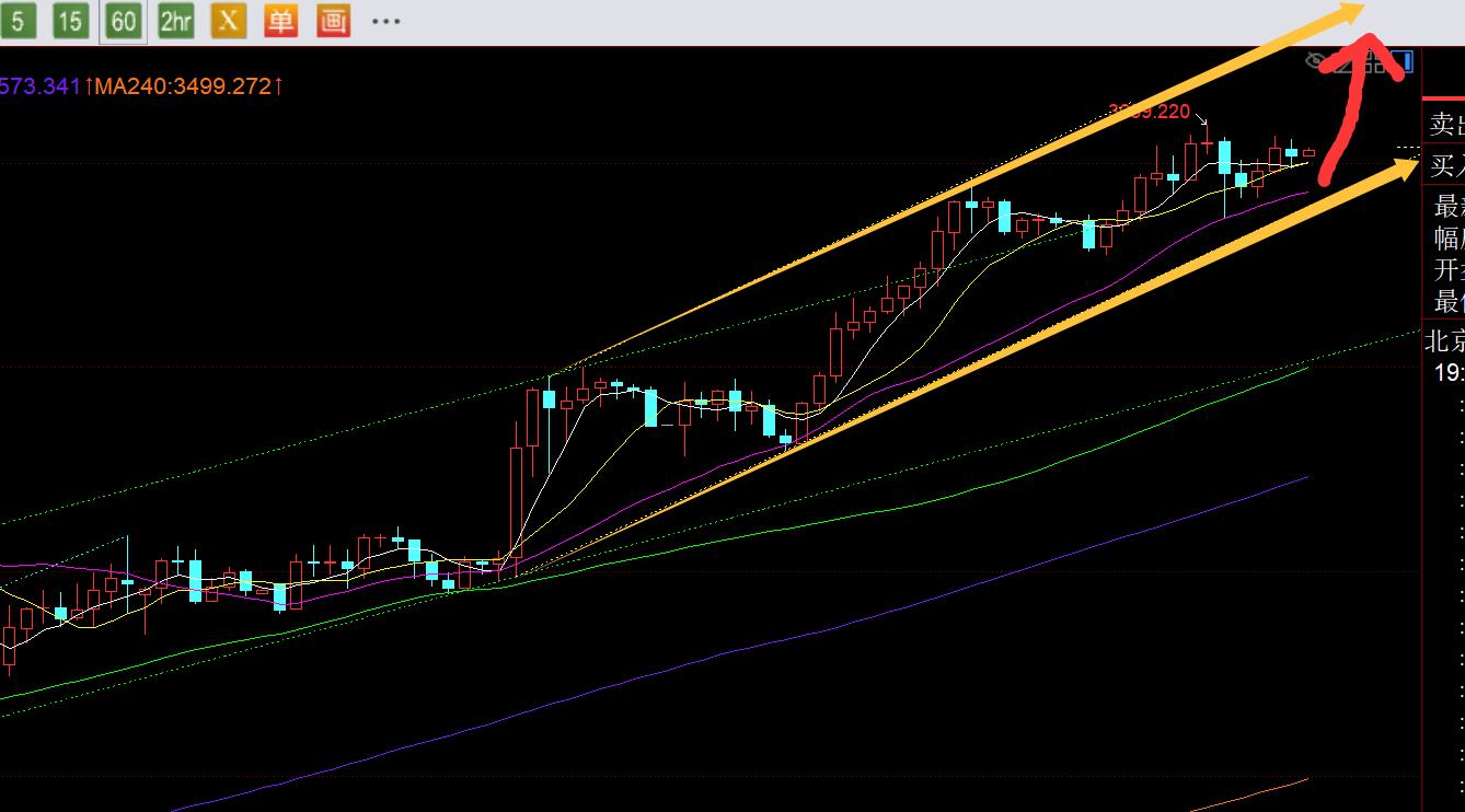 第三,黃金小時線級別:隔夜收線依然比較強勢,收盤前壓制3646小幅緩慢震盪下移,作為今日早間原計劃等10點前後緩慢靠近中軌3620上繼續看漲,昨日就是如此走法,但可惜只觸及3627,就提前企穩出現連陽拉升,重新站上短期10均線後,就認為要提前去強勢跟隨看漲,依托3640看漲,最終逼近3660一線目標;而午後成功走強拉升後,歐盤回踩頂底支撐3646的上方繼續看漲,不料出現了短暫洗盤跳水,最低3636;仔細一看,剛好打到中軌企穩,加上趨勢拉升中突襲出現急跌,往往難延續,因此3640上繼續跟隨看漲,再次成功拉升一波至3356;此時美盤前就沒啥波動了,維持3650上下5米內窄幅橫盤;近期單邊多頭拉升,有些規律還是比較值得參考,這幾日歐盤大多數都處於橫盤抗跌,美盤才會發力,只要守住早間低點3627風水嶺,繼續強勢看漲是不變的,目標也會繼續刷歷史新高,今晚有望衝擊3670-3677(按50米來推算),另外周視頻提及的長線幾個浪形目標,比如3687、3704、3746等預計都很快會一個一個去試探;從圖中通道看,結合中軌,今晚3640的上方會繼續保持單邊強勢上拉,預計3640-3650範圍都存在支撐,隨時穩定發力;