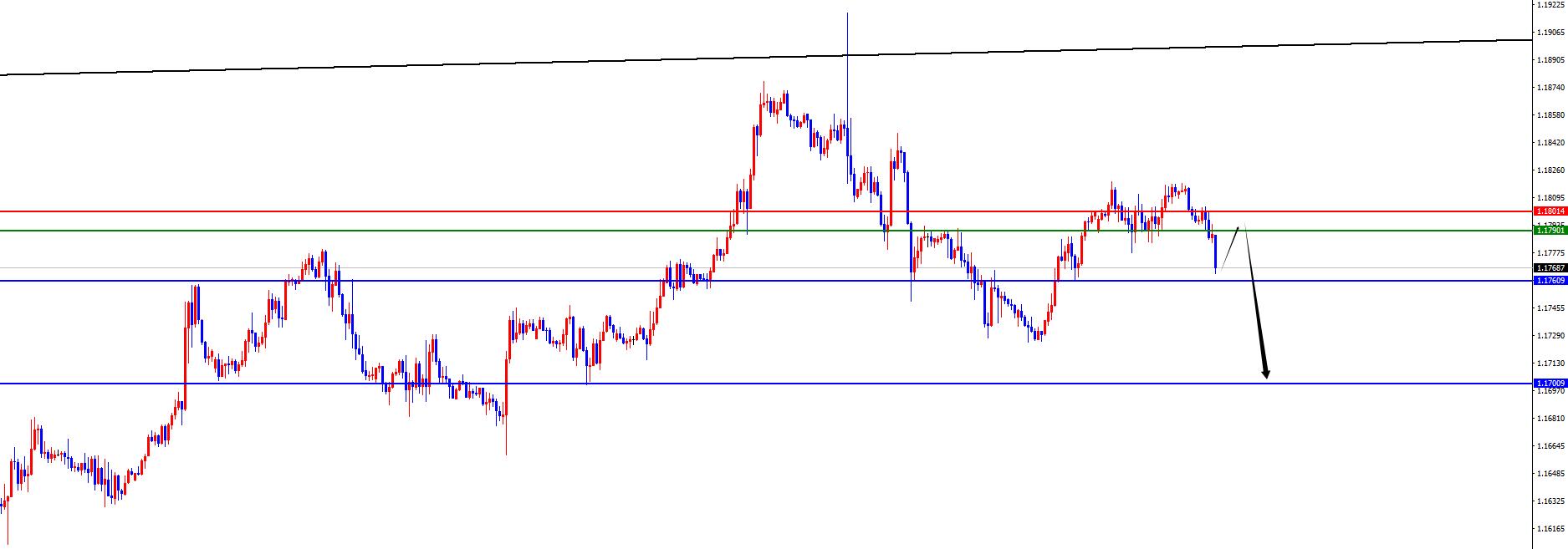 歐美1.1790-1.1800區間空,防守40點,目標1.1760-1.1700