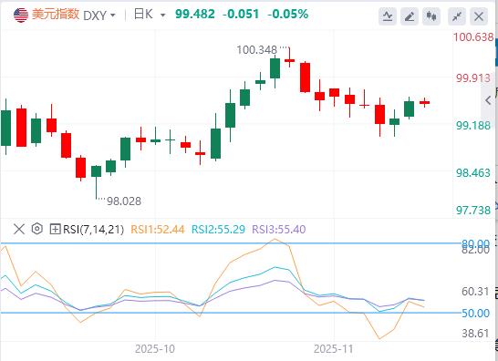 週一,得益於美聯儲12月降息預期降溫,美元指數延續反彈,截至目前,美元報價99.48。