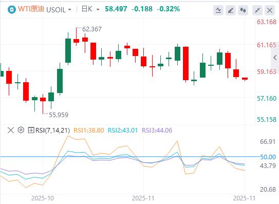 週五亞盤,原油交投58.49附近。油價週四震盪收跌,儘管美國原油庫存降幅超預期帶來支撐,但美國推動俄烏和談的消息引發供應過剩擔憂,最終壓制了市場情緒。市場正密切關注週五美國對俄羅斯石油公司和盧克石油製裁的生效情況,以及烏克蘭對最新和平提議的正式回應,這些因素將決定短期油價走向。